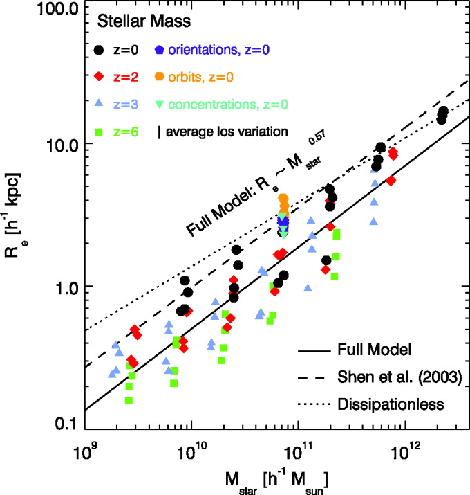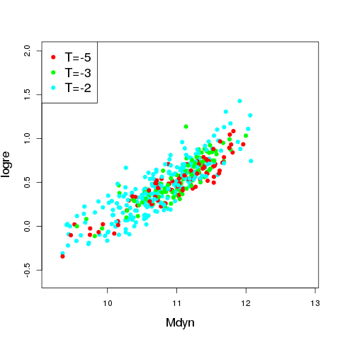 What you can see is that the morphological classes all show the same correlation between radius and mass, implying that all galaxies (here only ellipticals) share the same history! We know this is obviously wrong since at least mergers could not have occurred all at the exact same redshifts.
